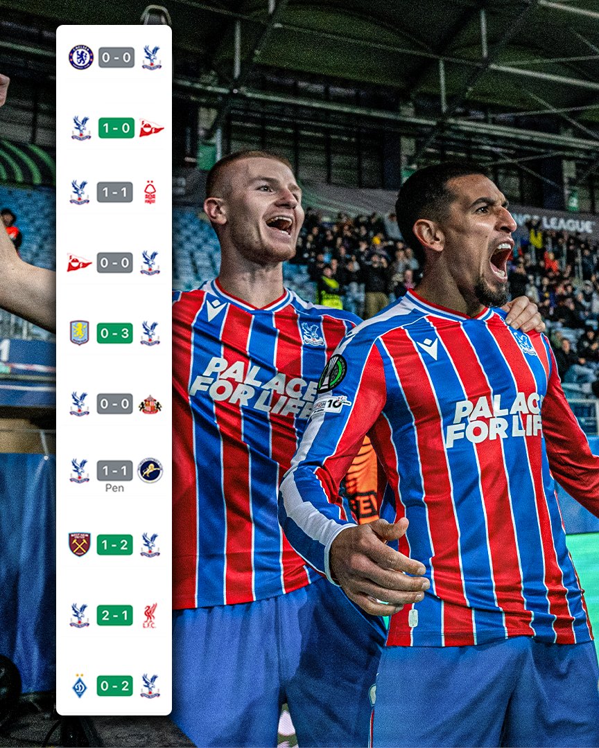 Crystal Palace មិនទាន់ស្គាល់បរាជ័យនៅគ្រប់ពានរង្វាន់នារដូវកាលនេះ និងមិនទាន់ចាញ់ការប្រកួតផ្លូវការចាប់តាំងពីខែមេសា៕