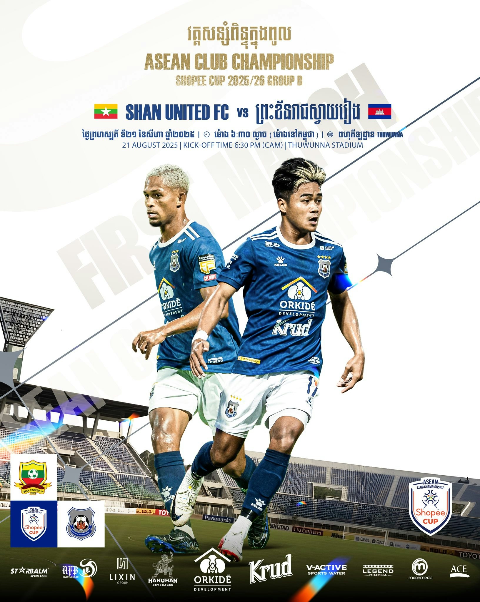ព្រះខ័នរាជស្វាយរៀង នឹងជួបម្ចាស់ផ្ទះ Shan United របស់មីយ៉ាន់ម៉ា ក្នុងជំនួបបើកឆាកពានរង្វាន់ Asean Club Championship Shopee Cup 2025/2026។